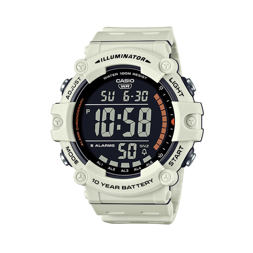 Casio10-year battery life 1/100-second stopwatch Dual time 5 alarms 100-meter water resistance LED backlight Wide face Case / bezel material: Resin R...