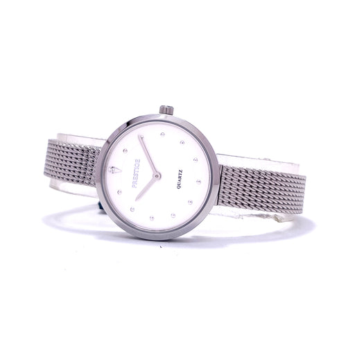 PrestigeDial Color: WhiteCase Material: Silver Plated Stainless SteelStrap: Silver Plated Stainless Steel MeshGender: Women’sWater Resistance: 30 MetersMov...